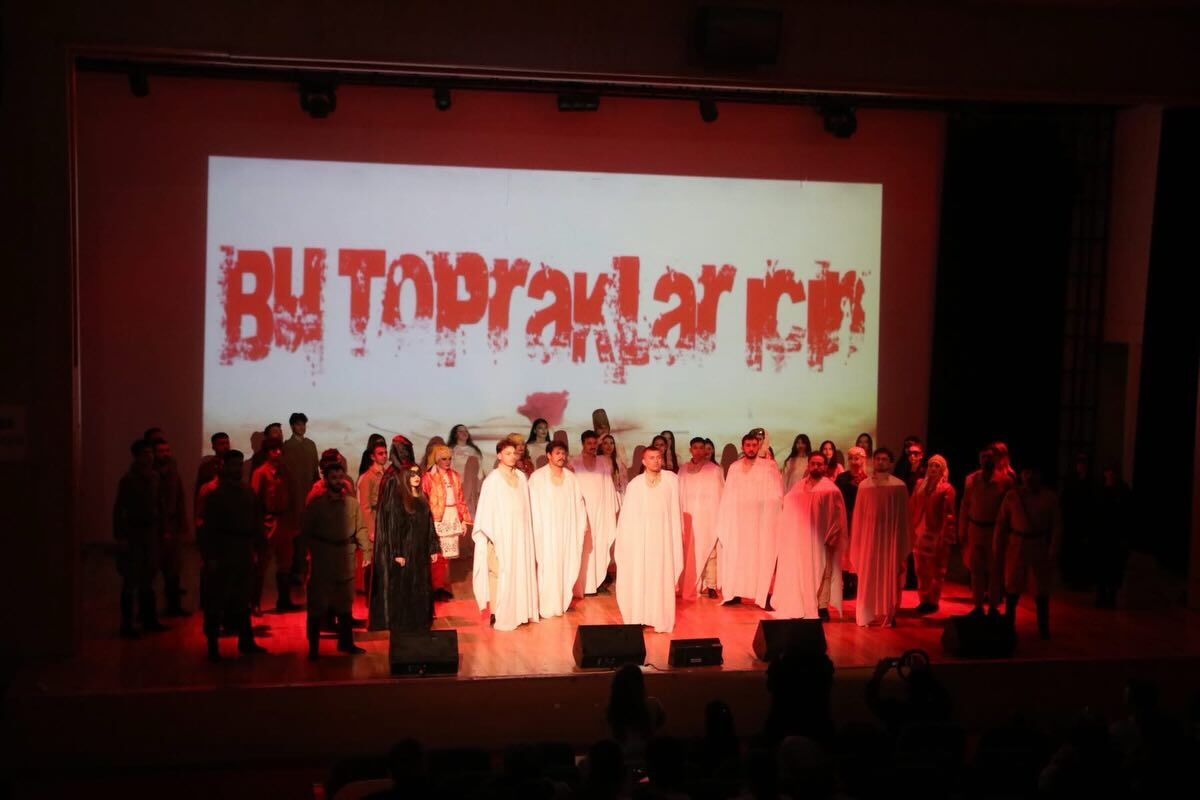 Sakarya Üniversitesi Devlet Konservatuvarı Türk Halk Oyunları Bölümü akademisyenleri ve öğrencileri tarafından sahnelenen “Bu Topraklar İçin” temalı performans, Çanakkale’de verilen destansı mücadelenin ruhunu sahneye taşıdı.
