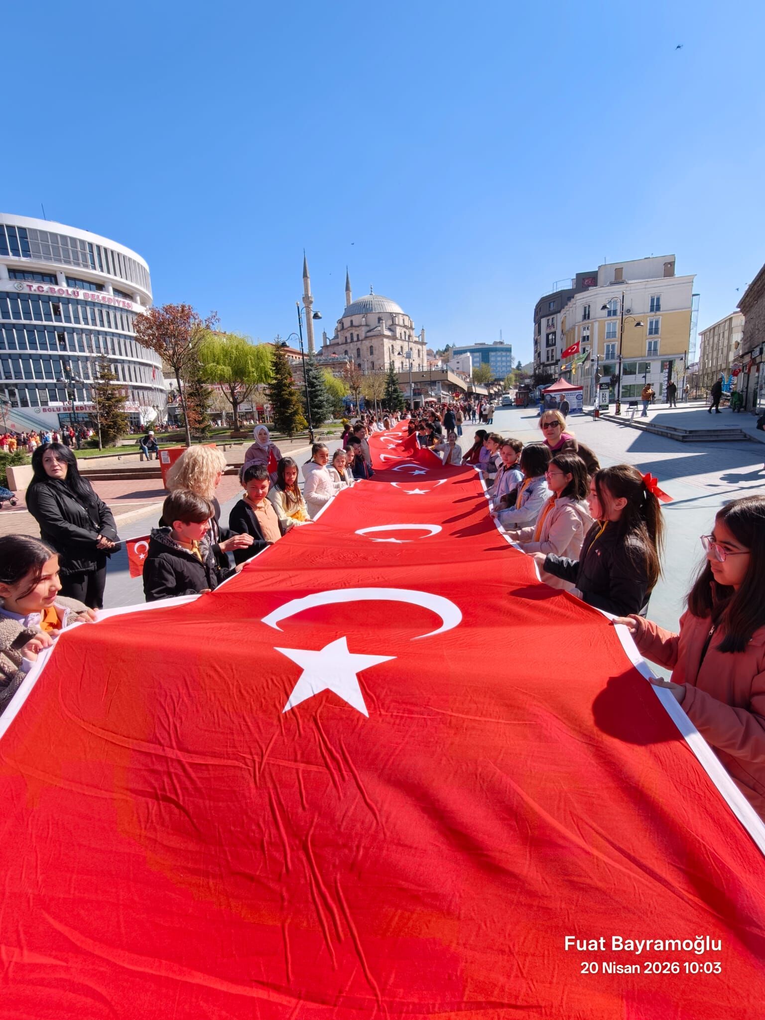 Milli Eğitim Bakanlığı’nın “Maarifin Kalbinde” temalı etkinlikleri kapsamında, Bolu 50. Yıl İzzet Baysal İlkokulu’nun 550 öğrencisi, 25 öğretmeni ve 40’tan fazla velisiyle birlikte, 200 metre uzunluğundaki al bayrak, mehter eşliğinde omuzlara alındı. Ama doğrusu şu: O gün taşınan sadece bir bayrak değildi… Bir milletin hafızası, bir medeniyetin vakar dolu yürüyüşüydü.