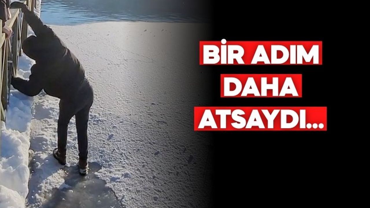 Abant Gölü Milli Parkı’na tatil için gelen ismi öğrenilemeyen bir genç, tüm uyarılara ve tabelalara aldırış etmeden donmuş göl yüzeyine çıkmak istedi. Göl kenarındaki ahşap çitlerin diğer tarafına geçen genç, korkuluklara tutunarak donmuş yüzeyde yürümeye başladı. Çevredeki vatandaşların bakışları arasında tehlikeli yürüyüşünü sürdüren genç, bir anda buzun kırılmasıyla neye uğradığını şaşırdı. Bastığı buz tabakasının aniden kırılmasıyla suya düşme tehlikesi geçiren genç, elleriyle tutunduğu çitler sayesinde buzlu suya düşmekten son anda kurtuldu. O anlar vatandaş kamerasına yansıdı.