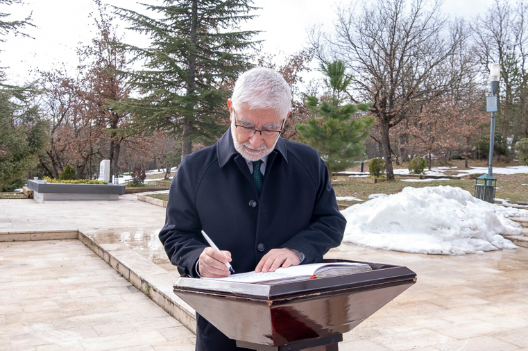 Ziyarette, merhum İzzet Baysal ile merhume Solmaz Baysal’ın kabirleri başında dua edildi. Rektör Prof. Dr. Faruk Yiğit, ziyaretin ardından kabirde bulunan ziyaretçi defterini imzaladı.