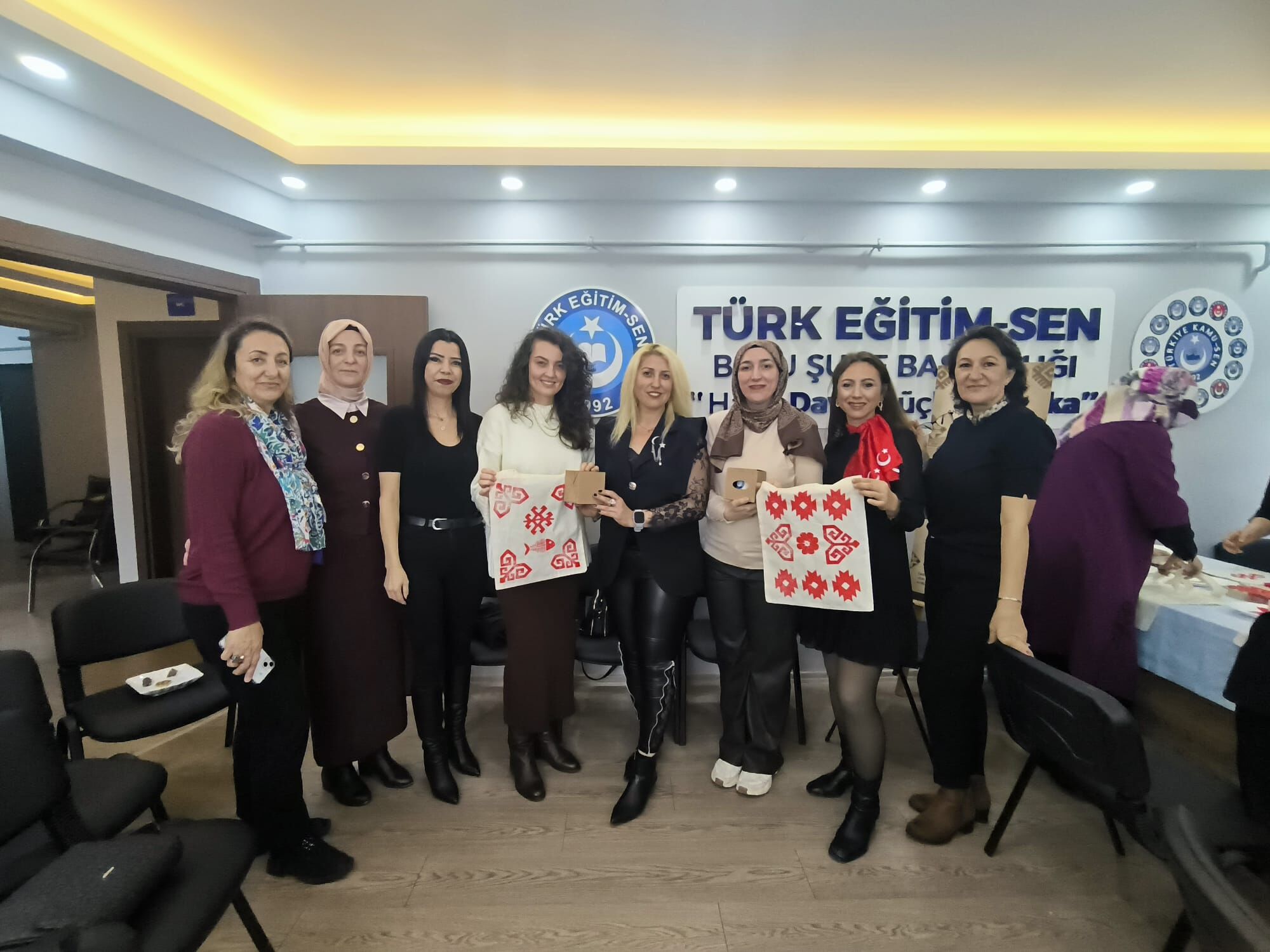 Türk Eğitim-Sen Bolu Şubesi, üyeleri arasındaki bağı güçlendiren sosyal sorumluluk projelerine bir yenisini daha ekledi. Şube bünyesinde bir araya gelen kadın üyeler, geleneksel Türk motiflerini ahşap baskı tekniğiyle kumaşlara işleyerek anlamlı bir çalışmaya imza attı.