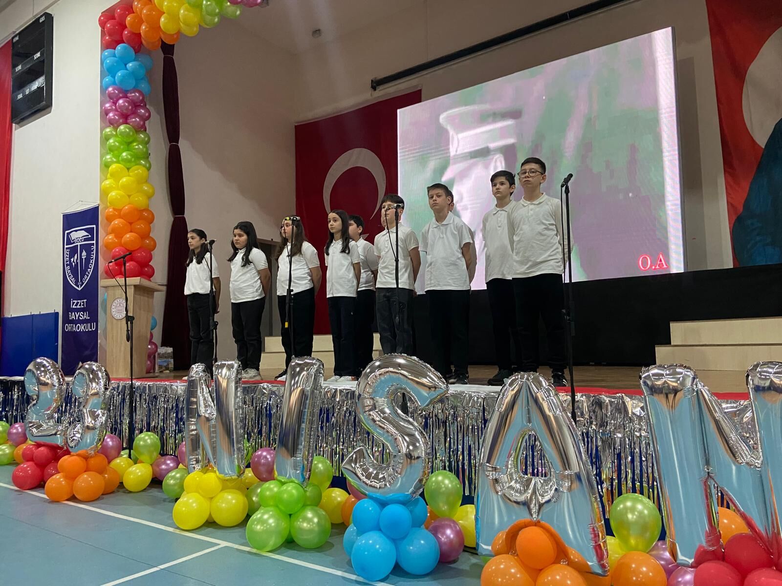 Ortaokul öğrencileri tarafından hazırlanan oratoryo, zeybek ve halk oyunları gösterileri izleyenlerden büyük alkış aldı. Program kapsamında sahne alan öğrenciler, koro halinde seslendirdikleri şarkılarla salondaki bayram coşkusunu artırdı.