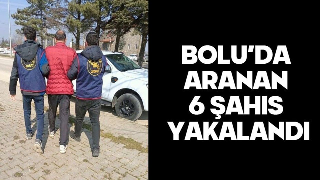 Bolu İl Jandarma Komutanlığı ekiplerince aranan şahısların yakalanmasına yönelik yürütülen çalışmalar kapsamında, farklı suçlardan kesinleşmiş hapis cezaları bulunan 6 kişi yakalandı.