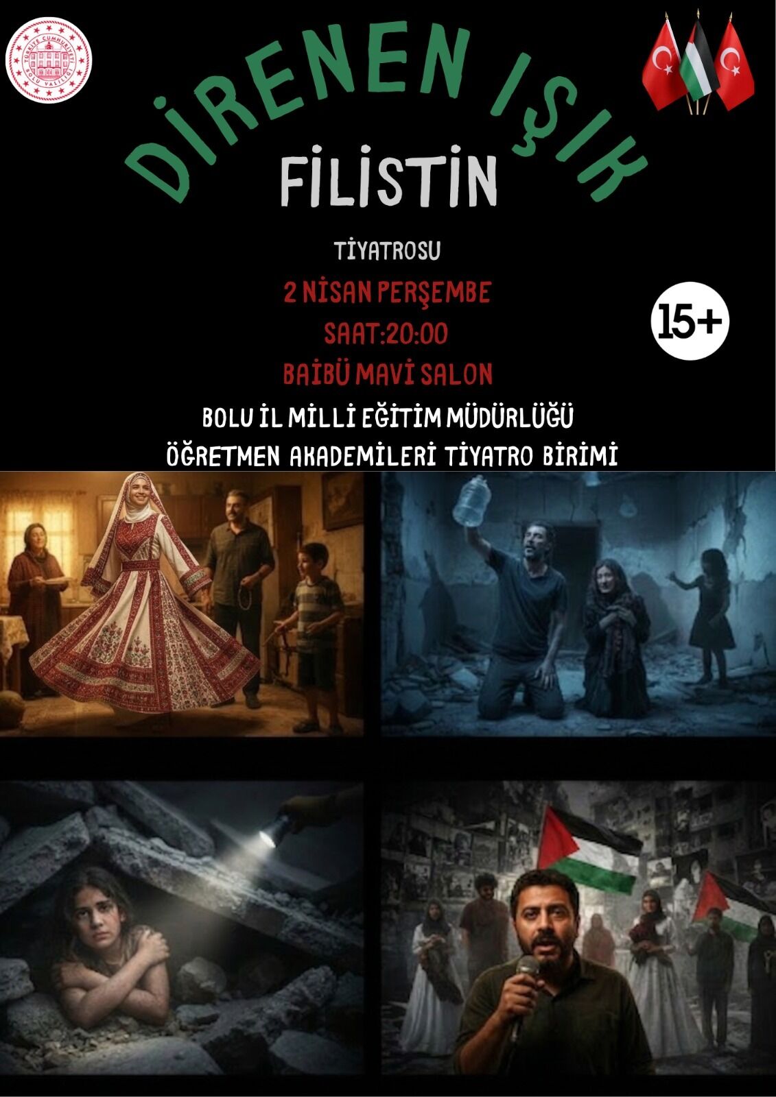 Bu sarsıcı rahmani metni sahneye koyan, öğretmenlerimizin o samimi performanslarını bir sanat şölenine dönüştüren Sezgin Hocamıza ve kıymetli öğretmen arkadaşlarına Bolu halkı adına özel bir teşekkür borçluyuz.