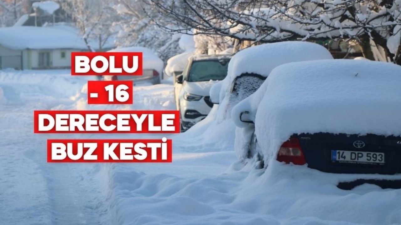 Bolu'da 3 gündür etkili olan kar yağışının ardından hava sıcaklığı sıfırın altında 16 dereceye kadar düştü. En düşük sıcaklığın eksi 16.2 dereceyle ölçüldüğü Dörtdivan ilçesinde ve kent merkezinde araçların kapıları dondu, yollar buz pistine döndü.