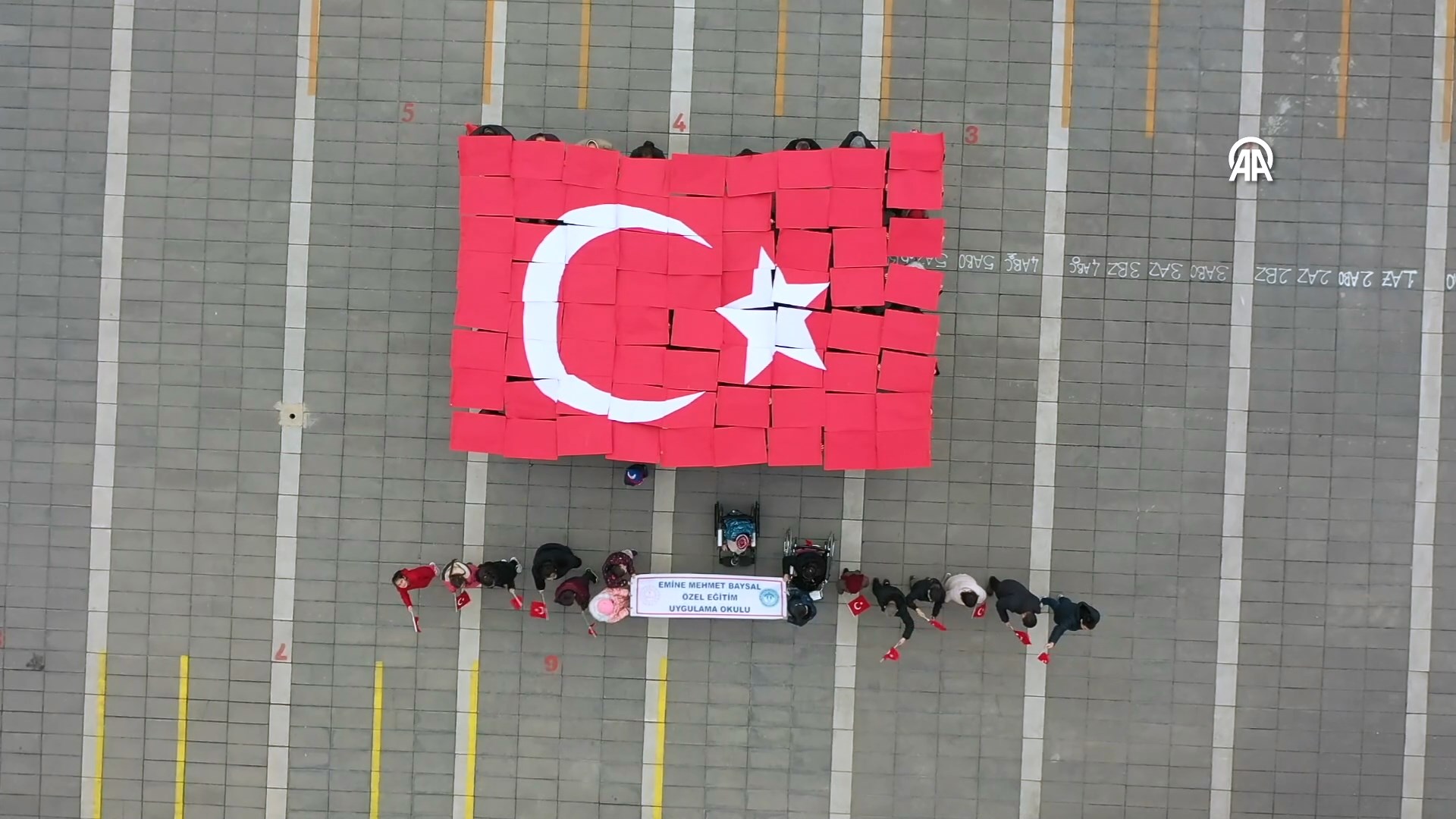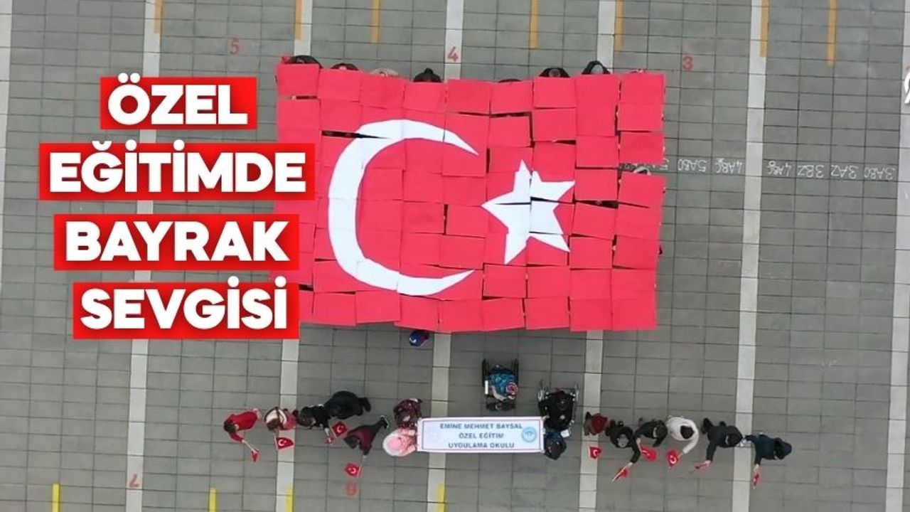 Okul bahçesinde gerçekleştirilen etkinlikte, özel öğrenciler ve aileleri, Türk bayrağına duydukları sevgi ve bağlılığı müzikli gösteriyle ifade etti. Öğretmenler rehberliğinde hazırlanan programda, okul öğretmenleri ve veliler ellerindeki renkli kartonlarla sıraya geçen çocuklarının arkasından yürüdü. Burada sıraya geçen veliler ve öğretmenler, kartonlarını sırayla açarak Türk bayrağı oluşturdu. Etkinlik, öğrencilerin Türk bayrağı bağlı balonları gökyüzüne bırakmasıyla sona erdi.