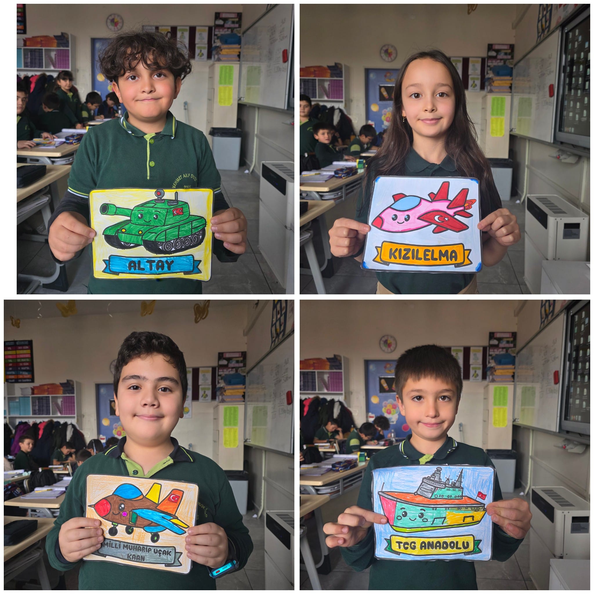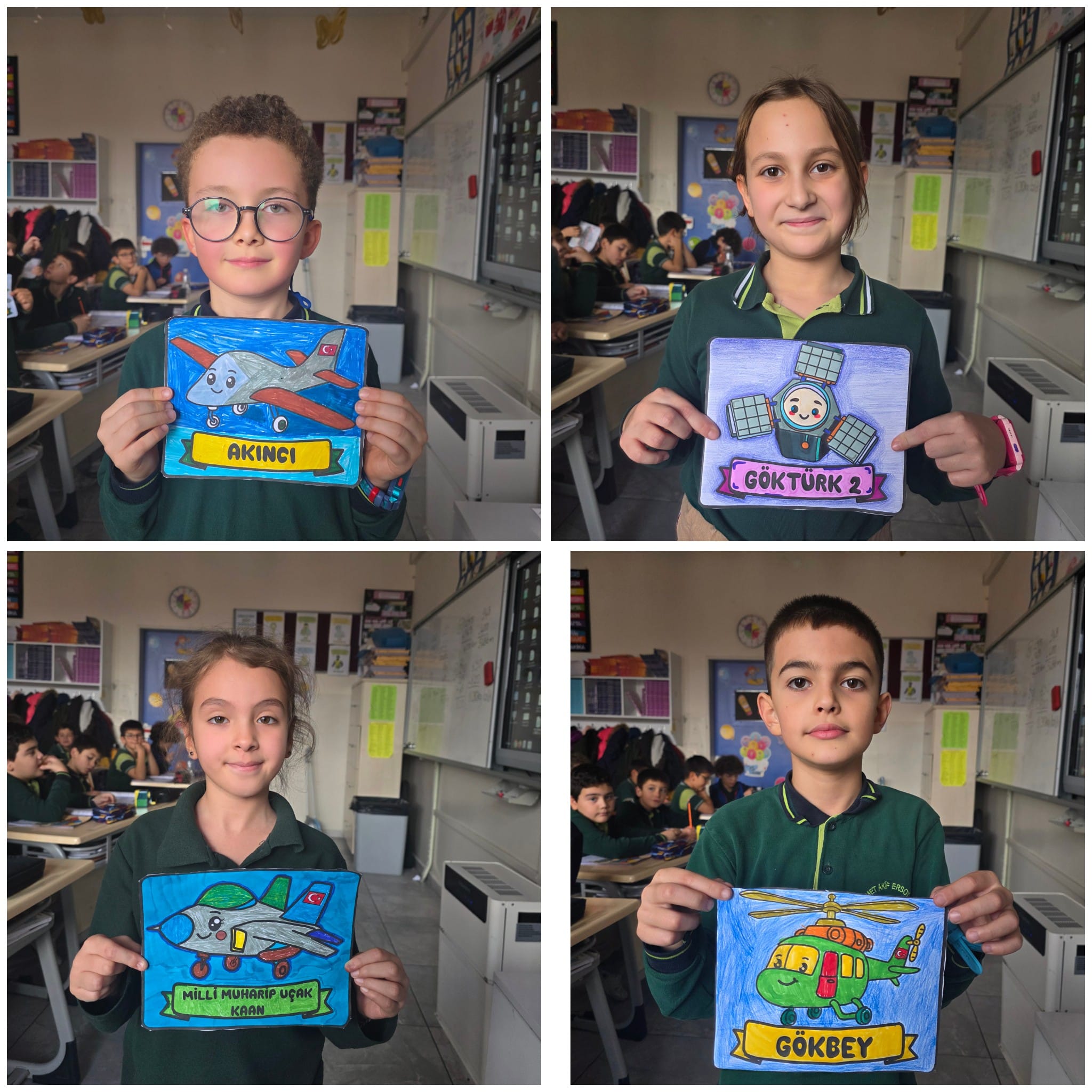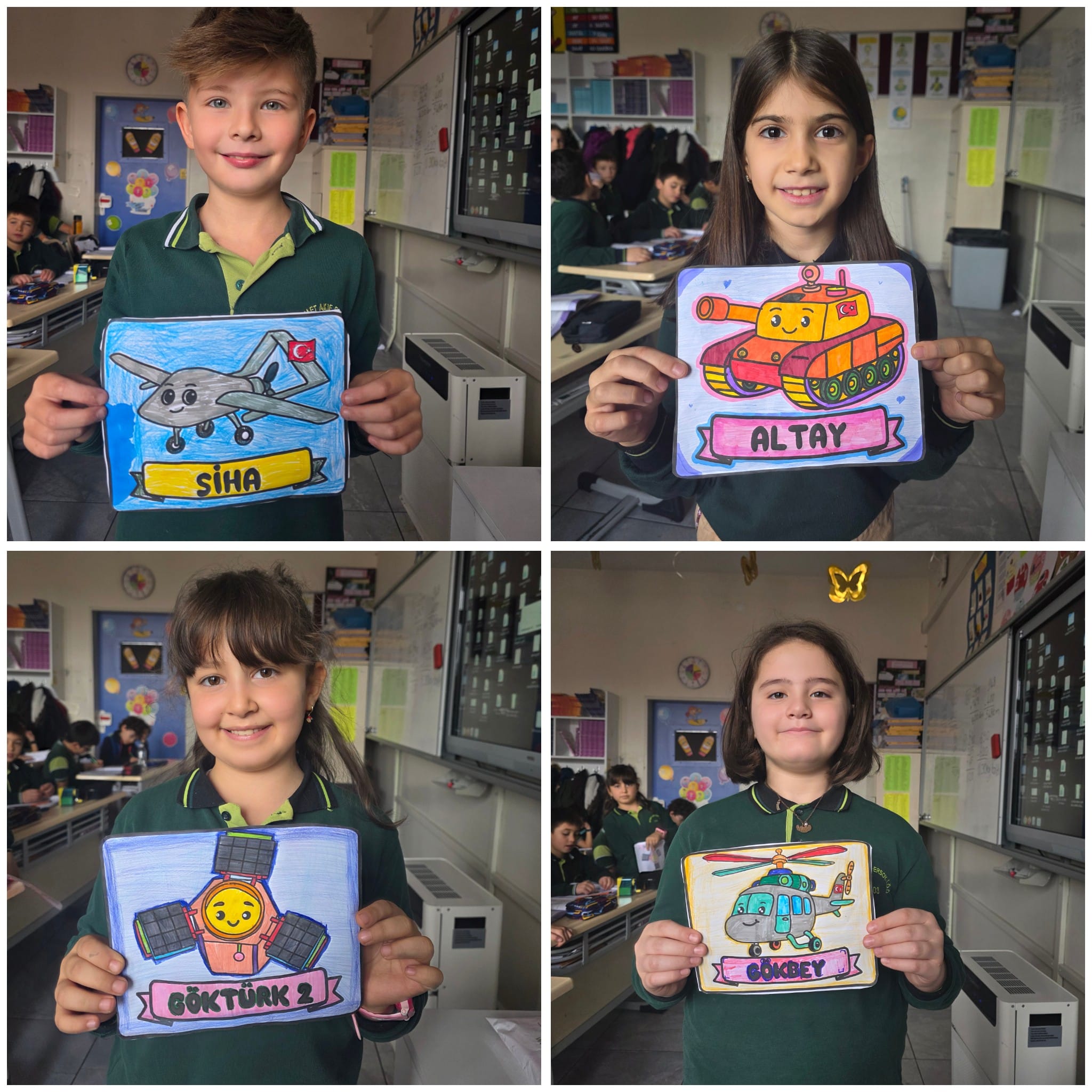 Bolu Mehmet Akif Ersoy İlkokulu 3/F sınıfı öğrencileri, Yerli Malı Haftası kapsamında gerçekleştirdikleri millî sanayi, savunma ve sağlık temalı özgün çalışmalarla hem okul yönetiminin hem de İl Millî Eğitim Müdürlüğünün takdirini kazandı.