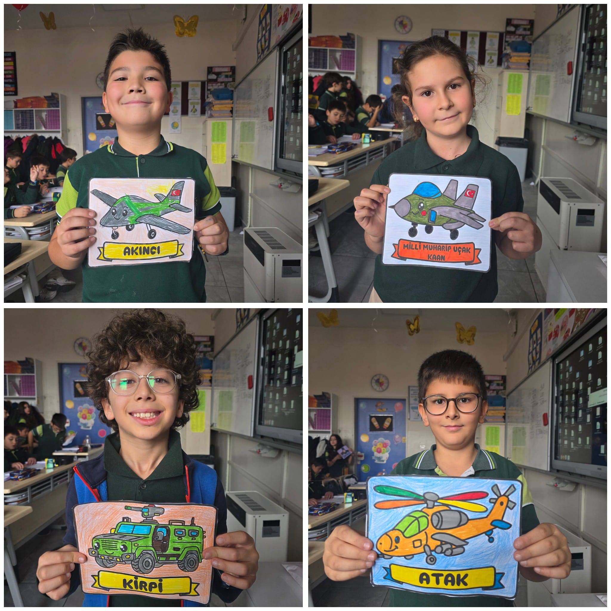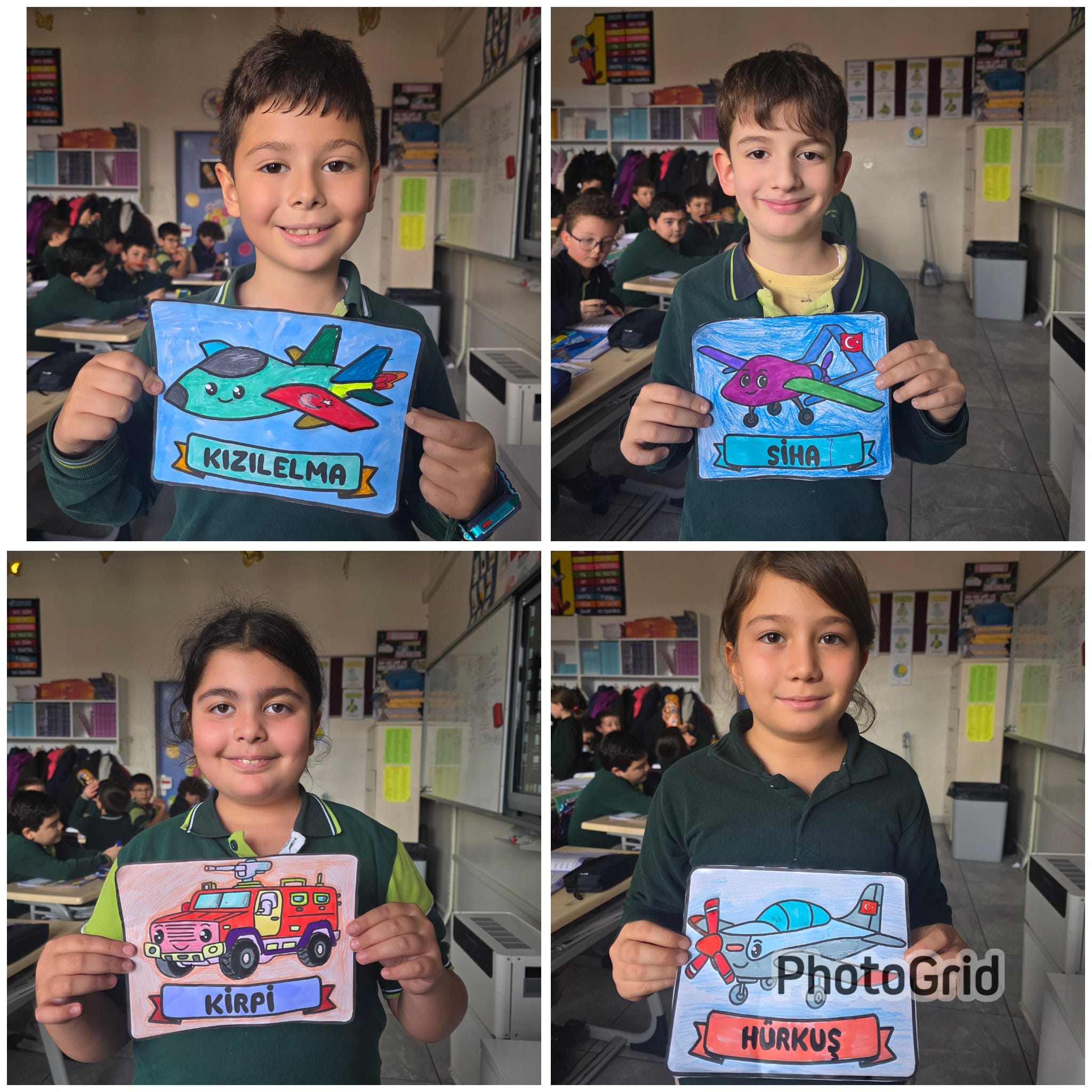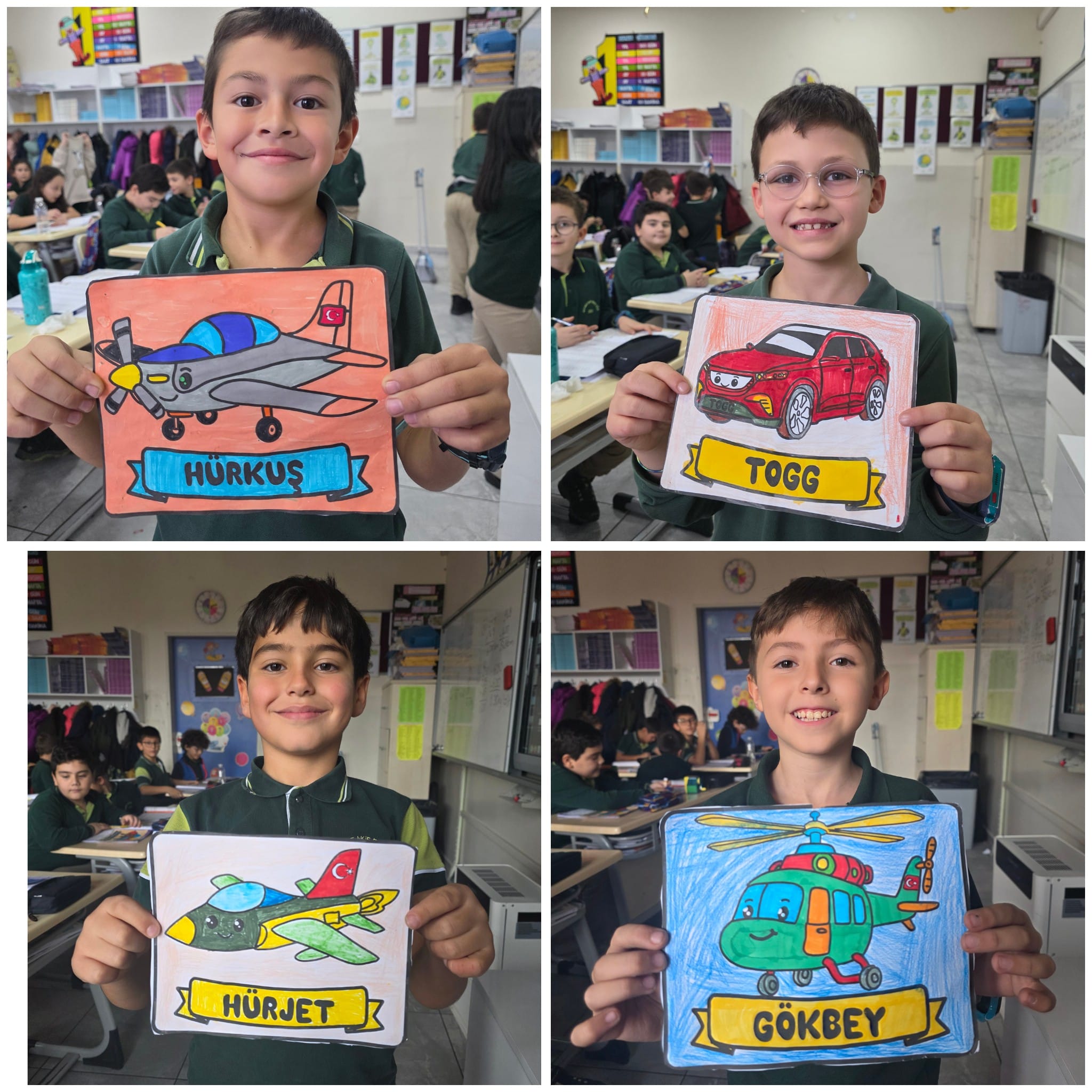 Bolu Mehmet Akif Ersoy İlkokulu 3/F sınıfı öğrencileri, Yerli Malı Haftası kapsamında gerçekleştirdikleri millî sanayi, savunma ve sağlık temalı özgün çalışmalarla hem okul yönetiminin hem de İl Millî Eğitim Müdürlüğünün takdirini kazandı.