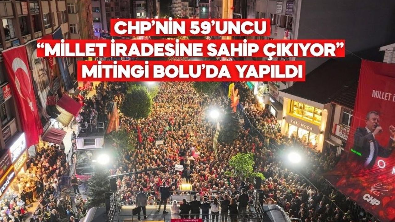 Cumhuriyet Halk Partisi, yeni yasama yılı öncesi milletvekili grubunun yol haritasını belirlemek amacıyla düzenlediği kamp öncesinde Bolu’da miting gerçekleştirdi. “Millet İradesine Sahip Çıkıyor” sloganıyla düzenlenen 59’uncu mitinge binlerce vatandaş katıldı. Miting alanına sığmayan kalabalık, bariyerlerin dışından, caddelerden, evlerinin balkonlarından ve dükkânlardan konuşmaları takip etti.