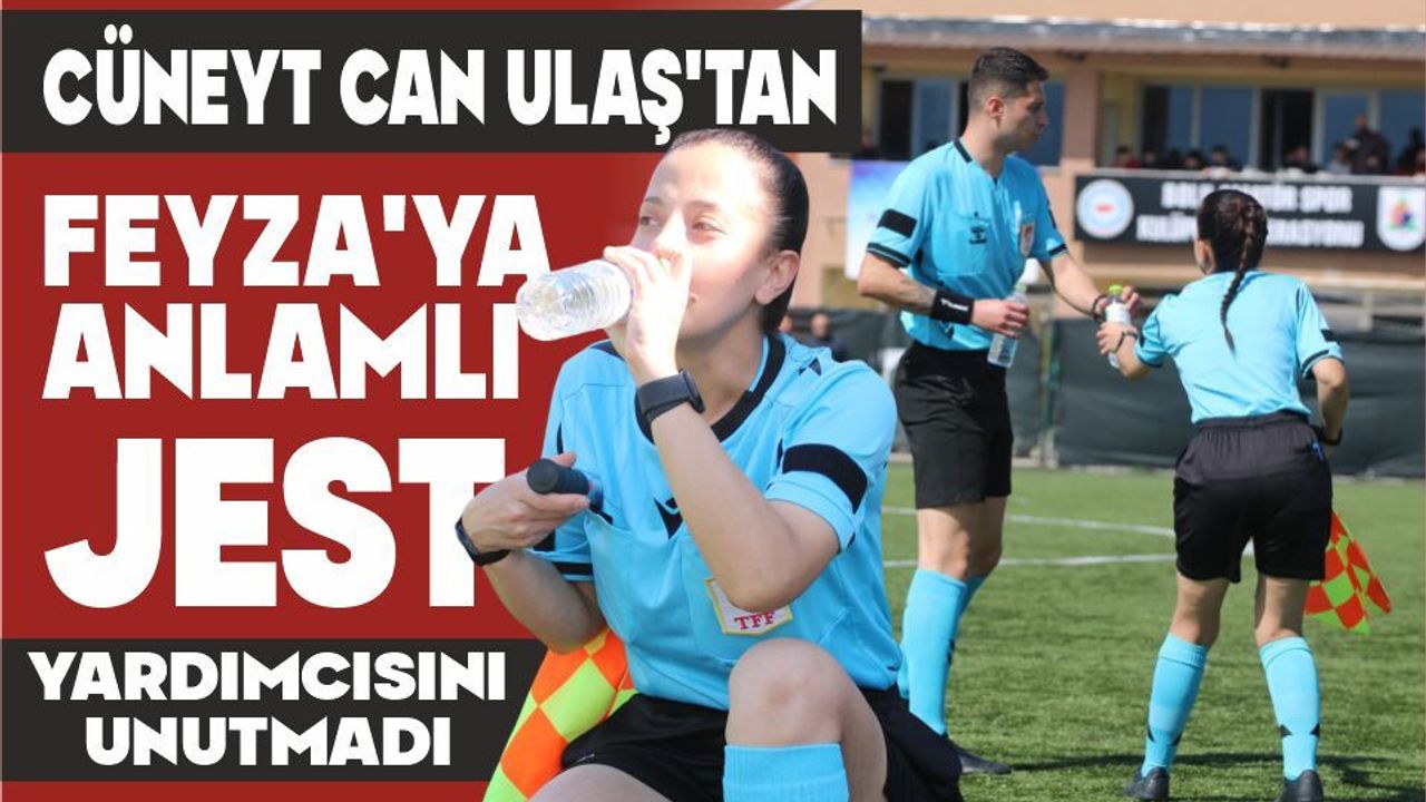 Ulaş, mola anında yardımcısı Fatma Feyza Kavak’ı da unutmayarak, saha kenarından temin edilen suyun kendisine ulaştırılmasını sağladı. Bu anlamlı hareket objektiflerimize yansırken, hakemler arasındaki dayanışma tribünlerde maçı izleyen futbolseverlerin de takdirini kazandı.