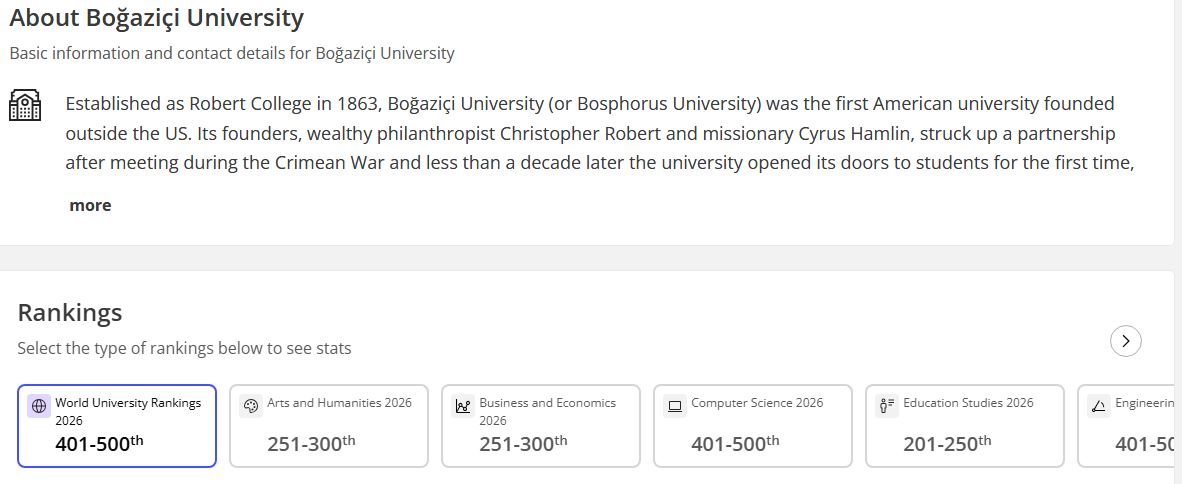 Alan bazlı sıralamalar, Düzce Üniversitesi’nin bazı disiplinlerde Boğaziçi Üniversitesi ile aynı bantlarda yer alabildiğini ortaya koydu. Boğaziçi Üniversitesi, THE 2026 genel sıralamasında 401. sırada bulunurken; mühendislik, bilgisayar bilimleri ve sosyal bilimlerde Türkiye’nin en güçlü üniversiteleri arasında yer alıyor.
