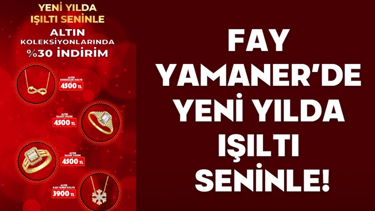 Fay Yamaner Mücevher bu yıl da yeni yıla en ışıltılı kampanyalar ile merhaba diyor. Tüm takı ve saat alışverişlerinizde yeni yıla özel fiyatlar ve büyük fırsatlar sizlerle. Bolu ve Çanakkale’deki mağazalarında yeni yılı özel fiyatlar ile karşılayan Fay Yamaner Mücevher en trend altın takı koleksiyonlarında muhteşem fiyatlar sunuyor. Her bütçeye uygun başka hiçbir yerde bulmayacağınız çeşitlilikteki 4500 TL’ den başlayan Altın Yüzükler, 3900 TL’den başlayan Altın Kolyeler ve yüzlerce alternatif ile Fay Yamaner Mücevher Mağazalarında sizleri bekliyor.