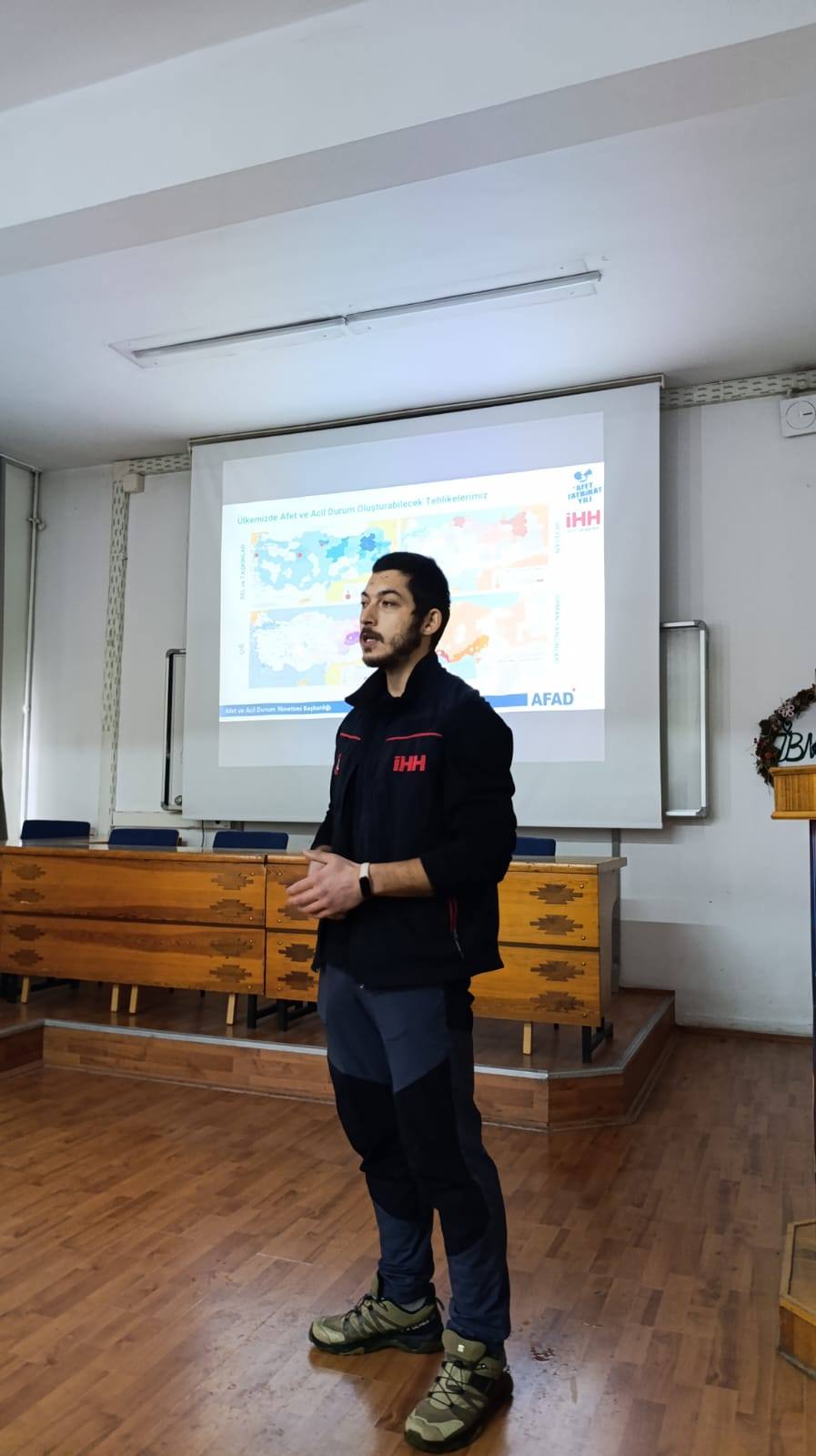İHH Arama Kurtarma Bolu ekibi, afetlere hazırlık ve bilinçlendirme çalışmaları kapsamında önemli bir eğitim faaliyetine imza attı. Bu çerçevede, İzzet Baysal Mesleki ve Teknik Anadolu Lisesi Afete Hazırlık Kulübü öğrencilerine yönelik “Afet Farkındalık” eğitimi gerçekleştirildi.