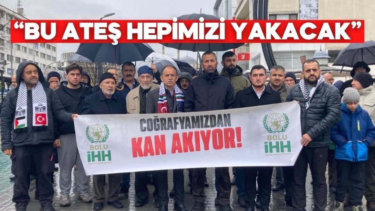 Bolu’da, İHH İnsani Yardım Vakfı öncülüğünde Kadı Camii önünde düzenlenen basın açıklamasında, İsrail ve ABD’nin bölgedeki askeri varlığına ve politikalarına tepki gösterildi. Sivil toplum kuruluşları ve vatandaşların katılımıyla gerçekleştirilen açıklamada, Gazze başta olmak üzere Orta Doğu’daki gelişmeler gündeme taşındı.