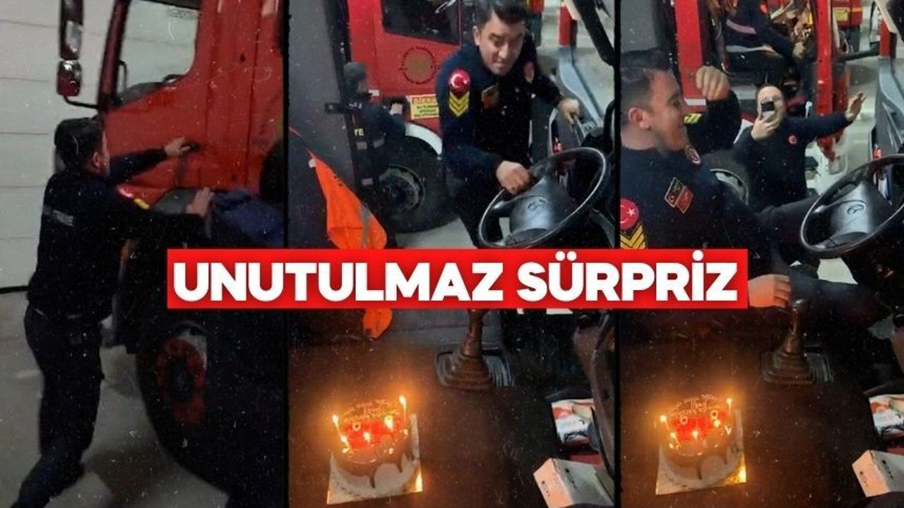 Bolu'da itfaiye erleri, başşoför olarak görev yapan mesai arkadaşları İlhami Özer'e, kendi evinde yangın çıktığı yönünde sahte ihbarla doğum günü sürprizi hazırladı. Duyduğu adres karşısında panikleyen ve "Anam anam benim ev" diyerek itfaiye aracına koşan Özer, sürücü koltuğuna geçmek için kapıyı açtığında sürprizle karşılaştı.