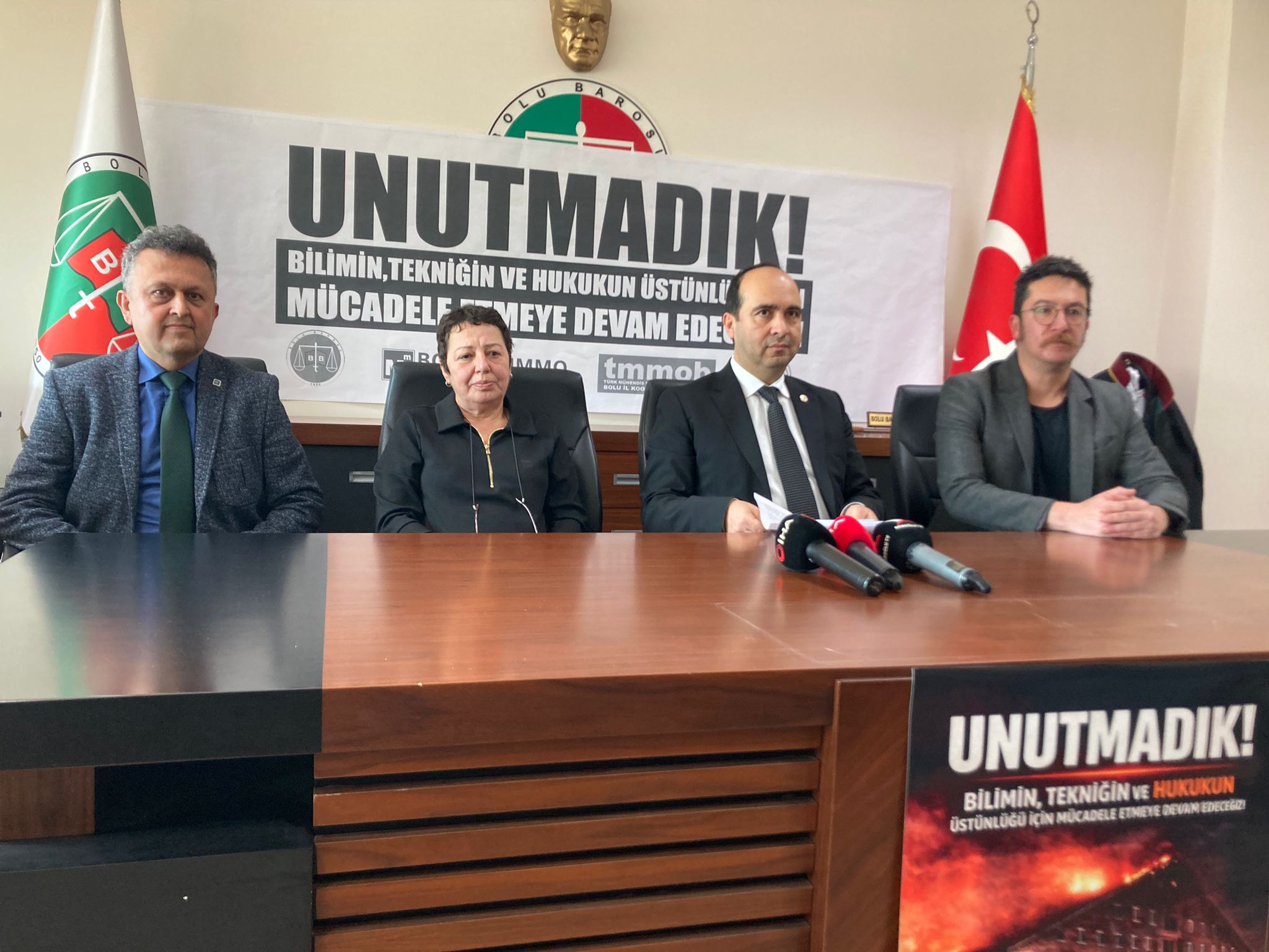 Ortak basın açıklaması; Bolu Barosu, Bolu-Düzce Tabip Odası, Bolu Serbest Muhasebeci Mali Müşavirler Odası ve Türk Mühendis ve Mimar Odaları Birliği Bolu İl Koordinasyon Kurulu tarafından imzalandı