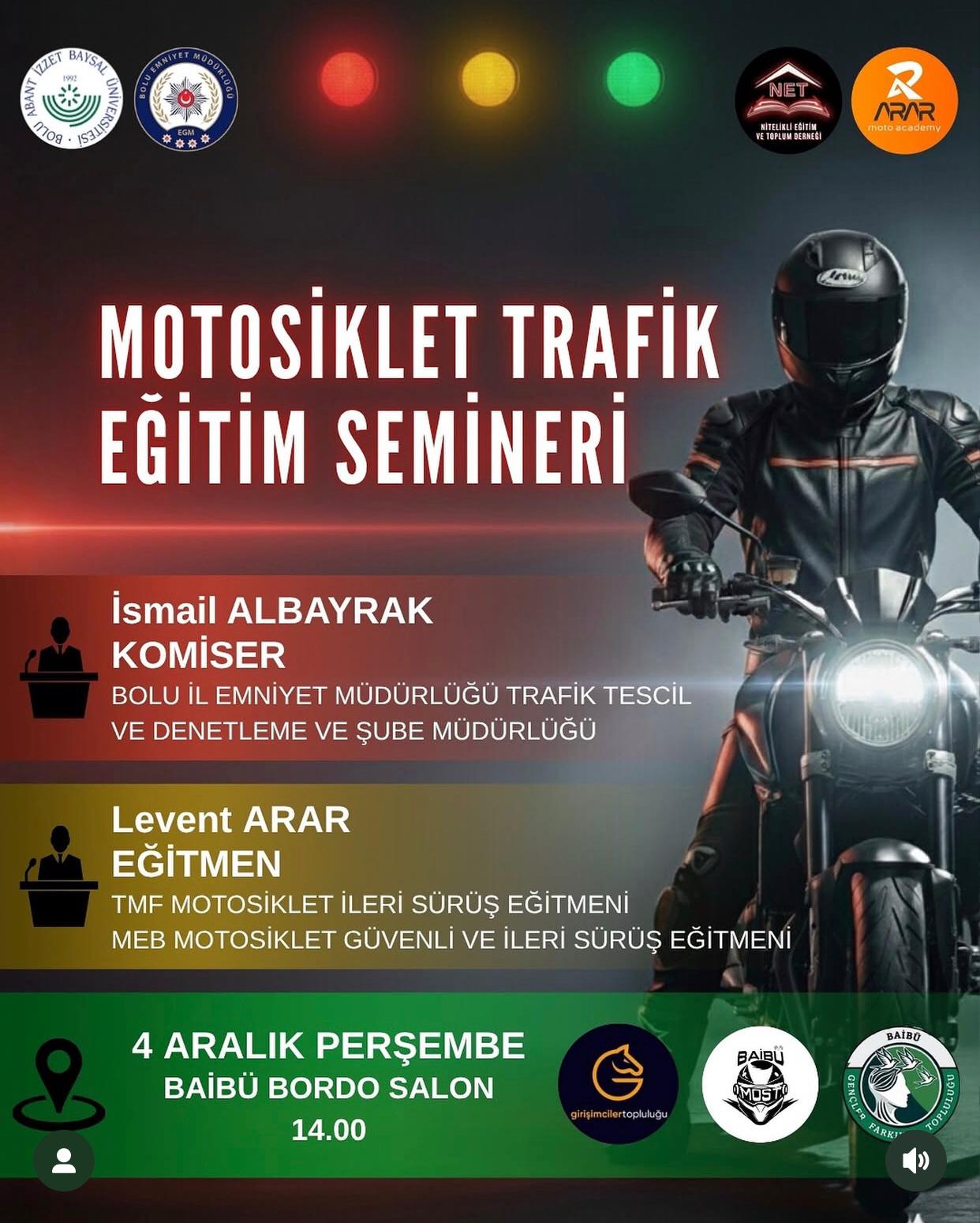 BAİBÜ öğrencilerinin yanı sıra motosiklete ilgi duyan tüm vatandaşların davetli olduğu seminer ücretsiz olarak gerçekleştirilecek.