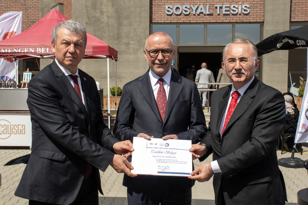 Konferansın ardından Prof. Dr. Arif Bilgin’e Bolu Milletvekili Yüksel Coşkunyürek ve Rektör Yardımcısı Prof. Dr. Ferudun Kaya tarafından teşekkür plaketi ve teşekkür belgesi takdim edildi.