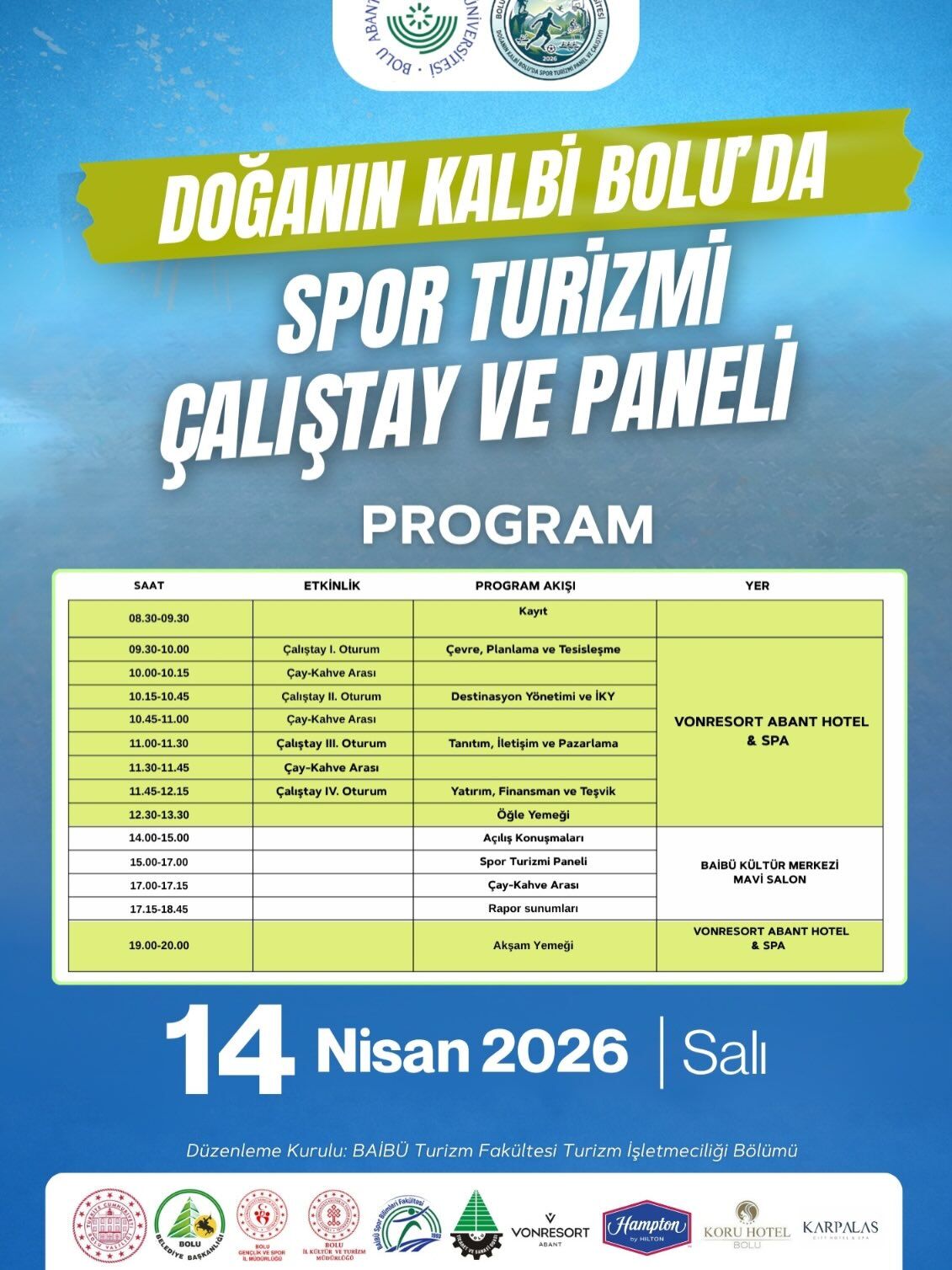 Programın panel bölümü, 14 Nisan 2026 Salı günü saat 14.00’te Bolu Abant İzzet Baysal Üniversitesi İzzet Baysal Kültür Merkezi Mavi Salon’da gerçekleştirilecek. Açılış konuşmalarının ardından “Spor Turizmi Paneli” ile devam edecek etkinlikte gün sonunda rapor sunumları yapılacak.