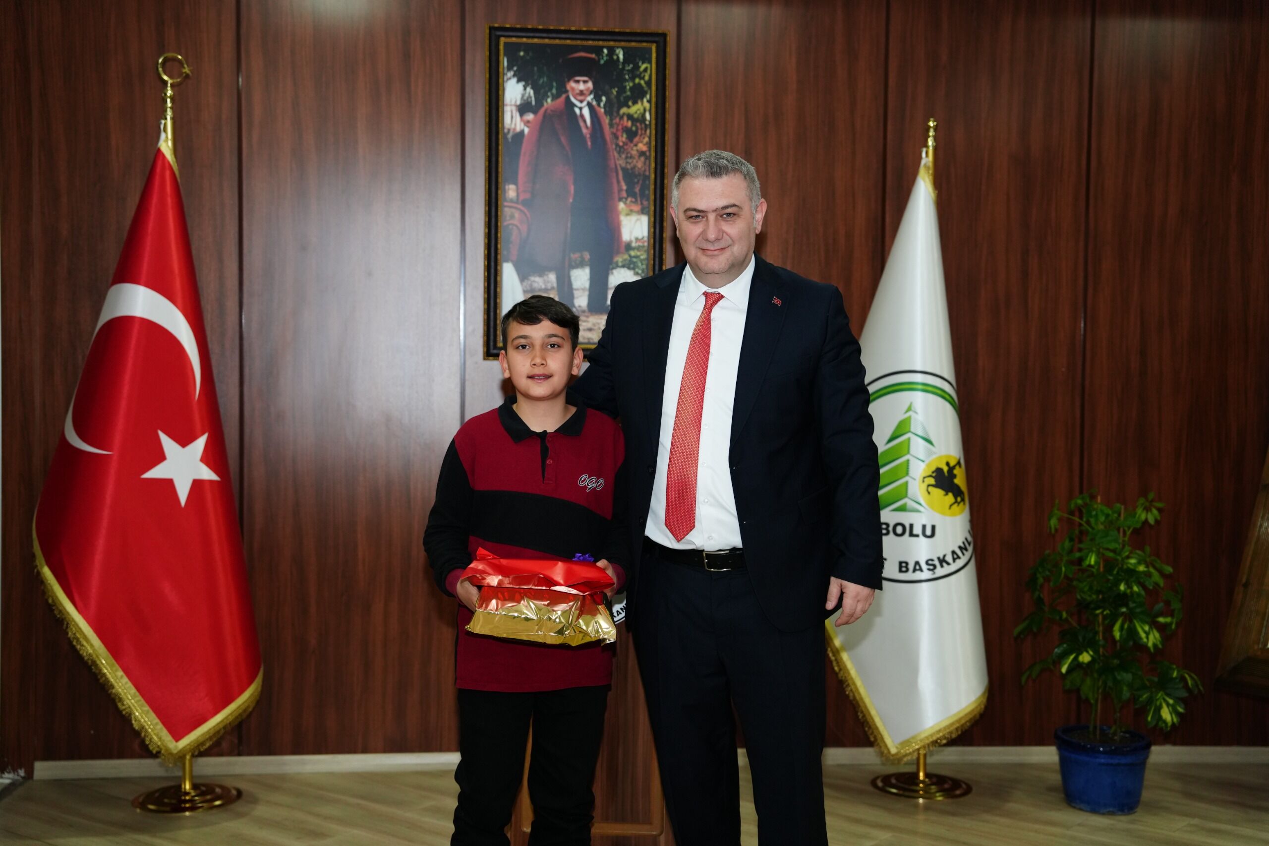 23 Nisan Ulusal Egemenlik ve Çocuk Bayramı dolayısıyla Bolu Belediyesi’nde başkanlık koltuğuna bir ortaokul öğrencisi oturdu. Bolu Belediye Başkanvekili M. Tuna Özcan, koltuğunu Orhangazi Ortaokulu 6/B öğrencisi Ozan Camgöz’e devretti. Başkanlık koltuğuna oturan çocuk başkan Camgöz, göreve hızlı başlayarak bazı müdürleri aradı.