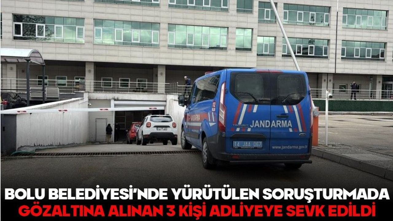 Geçtiğimiz ay yürütülen 'icbar suretiyle irtikap' soruşturması kapsamında Bolu Belediye Başkanı Tanju Özcan ve Belediye Başkan Yardımcısı Süleyman Can tutuklanarak cezaevine gönderilmişti. Dün sabahın ilk ışıklarıyla birlikte jandarma ekipleri tarafından belediye binasına geniş çaplı başlatılan arama çalışmaları devam ediyor. Jandarma, kurumdaki tüm bilgisayarları ve dijital materyalleri inceleme altına alırken 3 kişi gözaltına alındı.