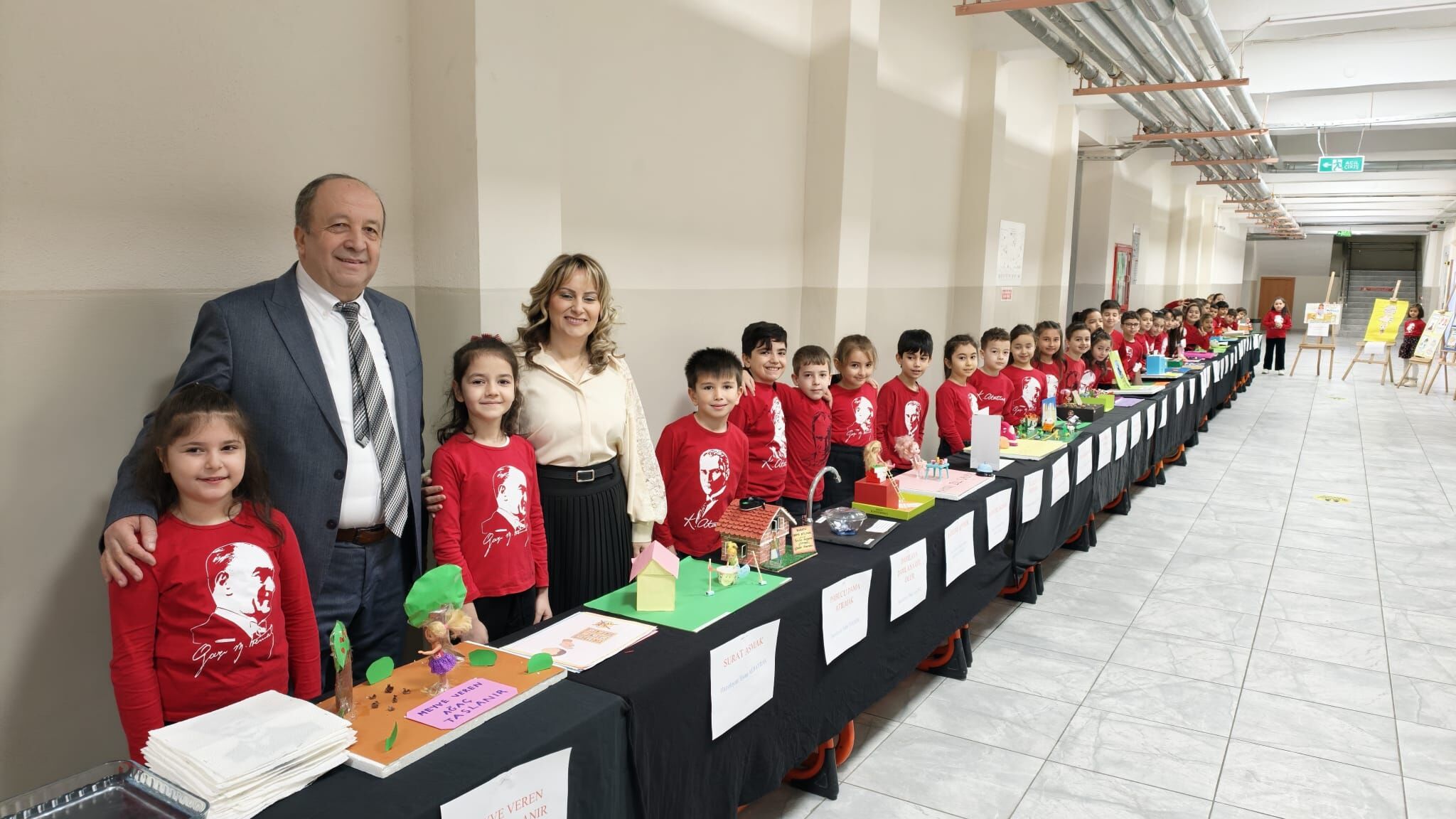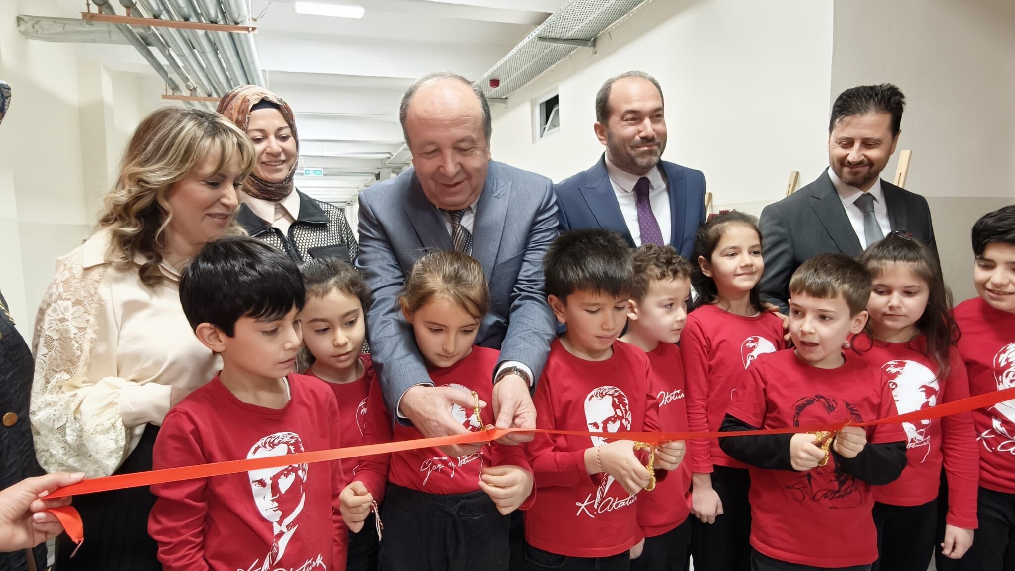 Konuşmaların ardından serginin kurdelesi İl Milli Eğitim Müdürü Cemal Turan, okul yöneticileri ve sınıftaki öğrenciler tarafından birlikte kesildi. Minik öğrencilerin makaslarla kurdeleyi keserken, ortaya çıkan sempatik görüntüler törene renk kattı.