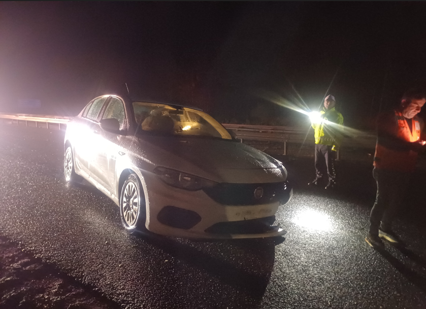 Aracını emniyet şeridine çeken sürücü, 112 Acil Çağrı Merkezi'ni arayarak yardım istedi.