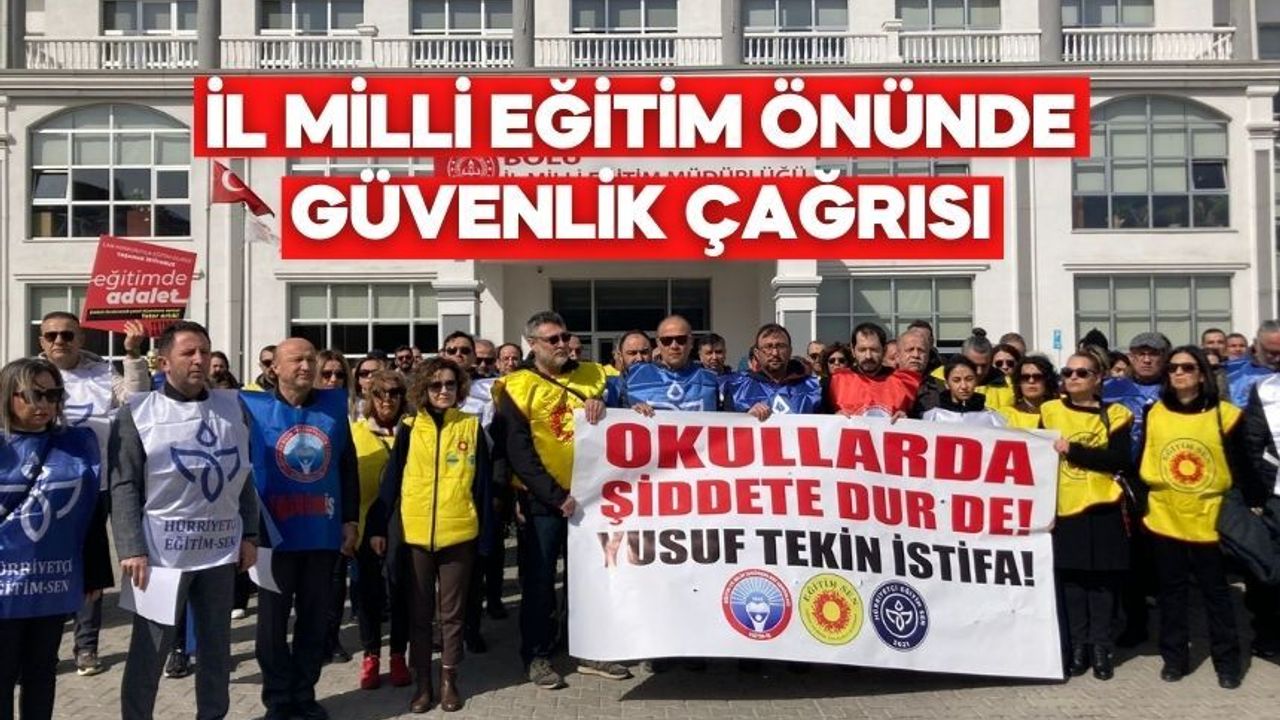İstanbul Çekmeköy’de bir öğretmenin hayatını kaybettiği okul saldırısının ardından Bolu’da üç eğitim sendikası İl Milli Eğitim Müdürlüğü önünde basın açıklaması yaptı. Eğitim-Sen, Hürriyetçi Eğitim-Sen ve Eğitim-İş Bolu Şubesi temsilcileri, öğretmenlerin ve öğrencilerin can güvenliğinin sağlanması için acil ve kalıcı önlem çağrısında bulundu.