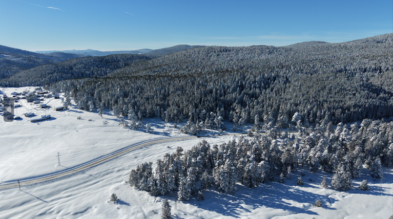 Bolu kent merkezine yaklaşık 20 kilometre mesafede konumlanan bölge, kar yağışının ardından eşsiz bir güzelliğe büründü. Bolu'nun güneydoğusunda yer alan Sarıalan, bünyesinde barındırdığı 14 farklı köy yaylası ile geniş bir alana yayılıyor. Çam ormanları arasındaki konumu ve düz yapısıyla özellikle kampçılar ve doğa tutkunları için benzersiz bir rota sunan yayla, sessizliği ve temiz havasıyla dikkat çekiyor. Kış mevsiminin etkisini göstermesiyle beyaza bürünen yayla evleri ve çam ağaçları, kartpostallık görüntüler oluşturdu. Bölgede yaşanan kış güzelliği havadan dron ile görüntülendi.