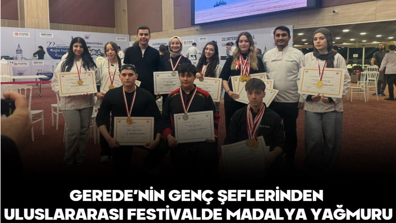 Uluslararası İstanbul Mutfak Günleri kapsamında düzenlenen yarışmalarda Gerede Aşçılık Turizm Mesleki ve Teknik Anadolu Lisesi öğrencileri önemli bir başarı elde etti. Farklı kategorilerde yarışan Geredeli öğrenciler, toplamda 9 altın, 3 gümüş ve 1 bronz madalya kazanarak ilçenin gururu oldu.