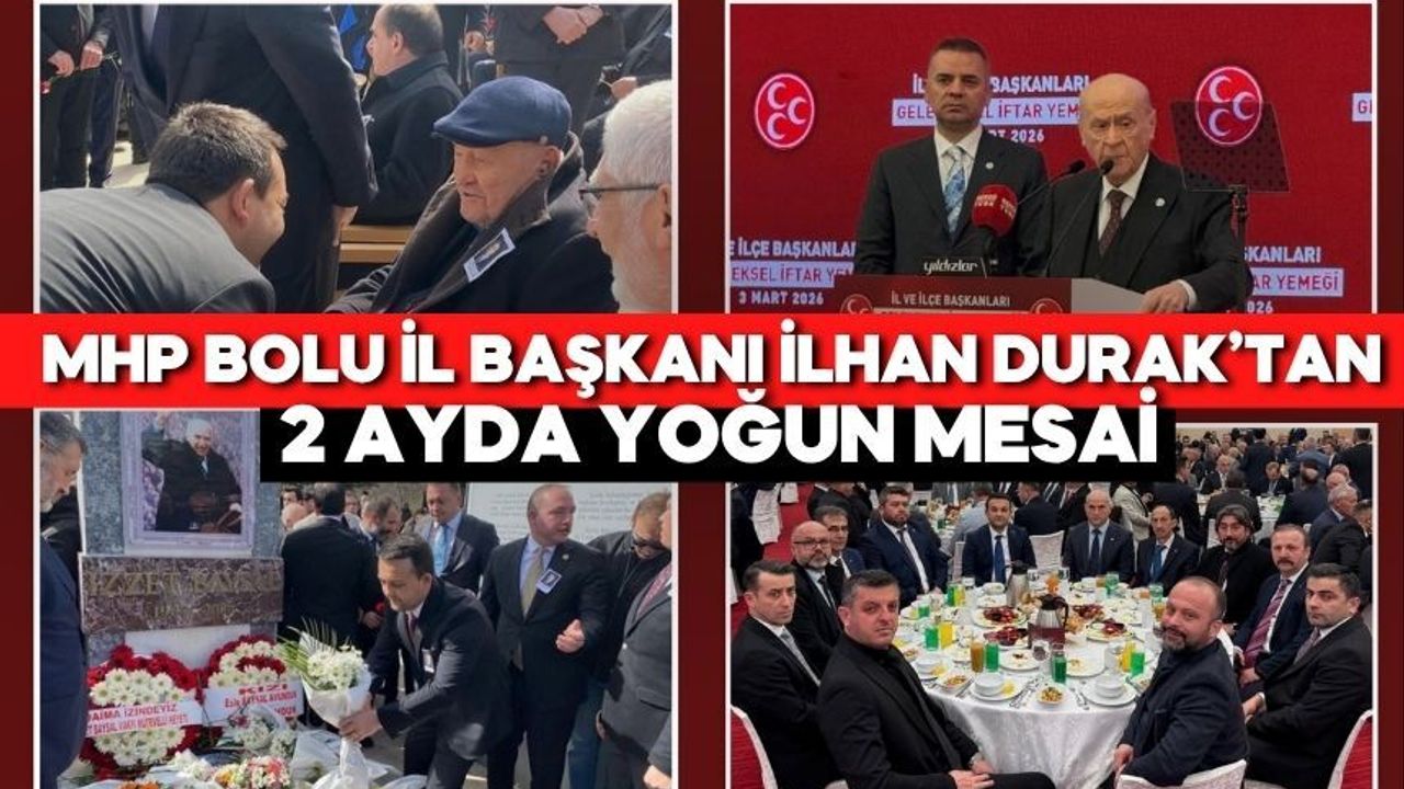 Milliyetçi Hareket Partisi Genel Başkanı Devlet Bahçeli’nin tensipleriyle 6 Şubat 2026 tarihinde yeniden Bolu İl Başkanlığı görevine atanan İlhan Durak, 60 günlük çalışma performansıyla dikkat çekti. Göreve gelir gelmez toplumun her kesimini kucaklayan 150 kişilik güçlü bir yönetim yapısı oluşturan Durak, bu süreçte hem sahada aktif rol aldı hem de makamında yaklaşık 300 farklı ziyaretçi grubunu ağırlayarak Bolu’nun her kesimiyle istişarelerde bulundu.