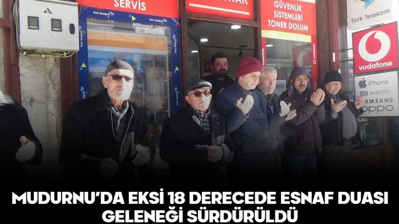 Mudurnu ilçe merkezindeki Orta Çarşı’da her cuma namazı öncesinde yapılan esnaf duasında, esnaf hayırlı ve bereketli kazanç ile sağlık için hep birlikte dua etti. Olumsuz hava şartlarına rağmen gerçekleştirilen duaya, yediden yetmişe çok sayıda vatandaş katıldı. Şehir dışından Mudurnu’yu gezmeye gelen ziyaretçiler de duaya eşlik etti. Geleneğe göre ayakta çalışan esnaf oturarak, oturarak çalışanlar ise ayakta dua etti. Cuma namazı öncesinde okunan esnaf duasının ardından, hayırseverler tarafından esnaf ve vatandaşlara lokum, hayır ekmeği ve pilav ikram edildi.