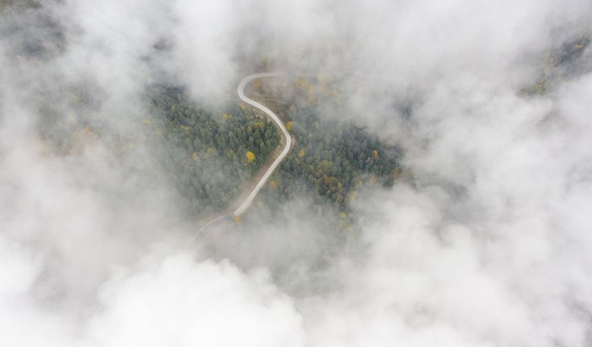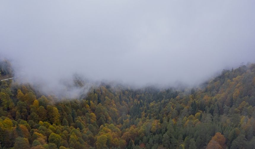 Kent merkezine yaklaşık 45 kilometre uzaklıkta bulunan milli park ve çevresinde zaman zaman etkili olan sis de rengarenk orman denizinin üstünü kaplıyor. Yedigöller Milli Parkı yolu üzerinde bulunan Ayıkayası mevkisinde etkili olan sis dronla görüntülendi. Sis hızlı çekim tekniği ile de kaydedildi.